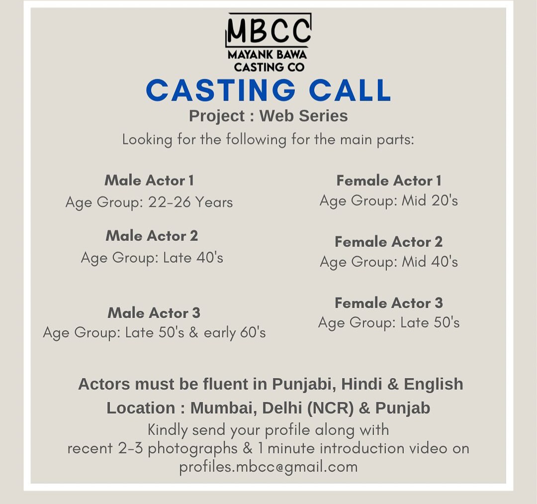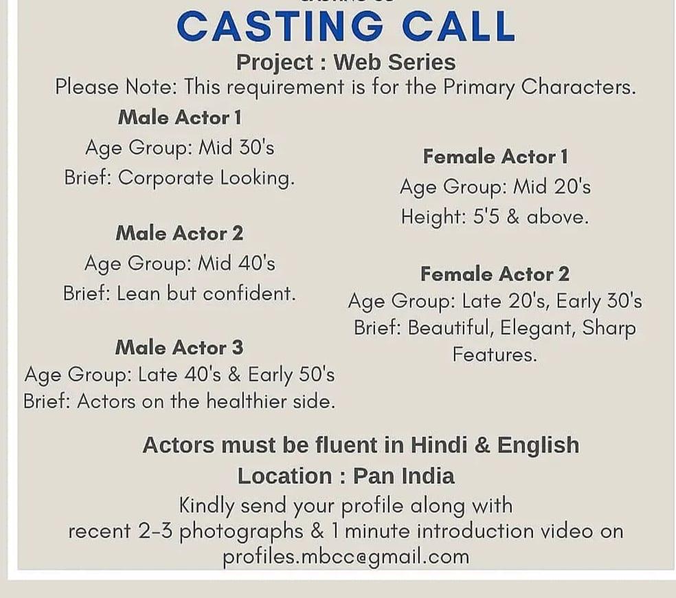 Casting requirements for a webseries as follows: