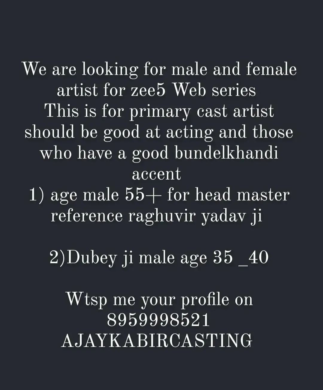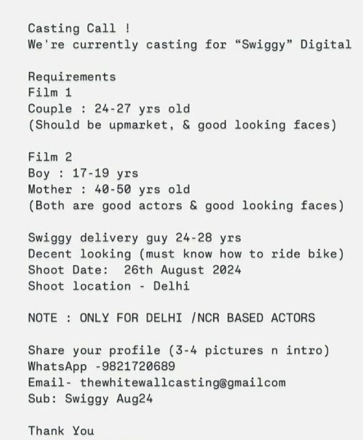 73 Casting Hub 8779399981, 7506974876 castinghub1566@gmail.com